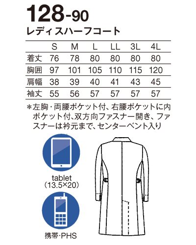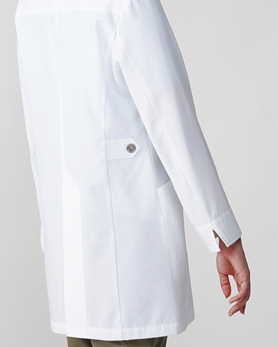 後ろ脇タブ付でウエストを適度にシェイプできる、ジップアップ診察衣。上下双方向に開閉できるハーフコートは、羽織るだけでなも様になる、業界初のスタイルです。 【織物素材】 ストレッチシーティーワイ(ポリエステル85%、綿15%) 【仕様】 左胸・両腰ポケット付/右腰ポケットに内ポケット付/双方向ファスナー開き/センターベント入り
