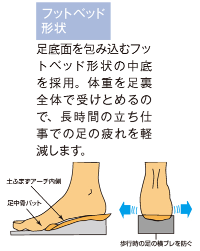 足裏は衝撃吸収素材の入ったフットベッド形状を採用。