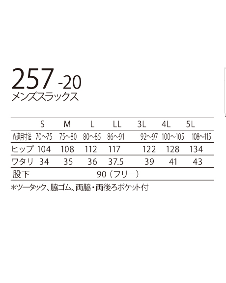 ツータック・脇ゴム・ 両脇・両後ろポケット付き