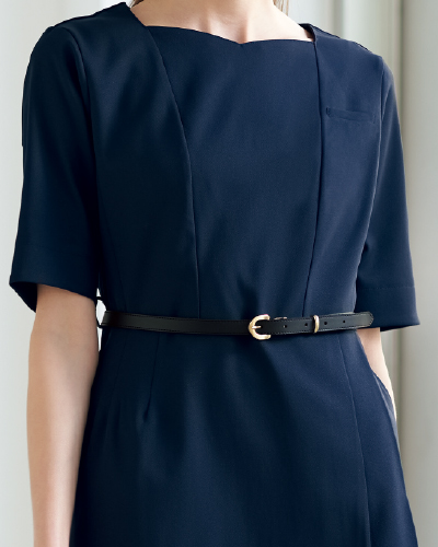 信頼感を演出できるダークネイビーはベルトがアクセント。