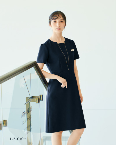 ゴールドのVライン がネックレスのように輝くワンピース