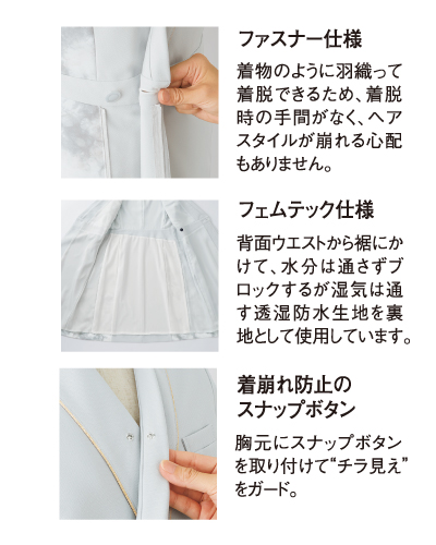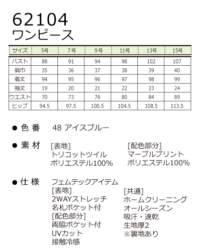 白衣・ナースウェア・介護服・エステウェア通販|ナースウェアドットコム en joie(アンジョア)ラ・ボーテ コレクション en joie(アンジョア)ワンピース ナースウェアナースウェアすべて> ワンピース エステウェア> ワンピース 受付・事務服ワンピース 62104 ワンピース ラ・ボーテ en joie(アンジョア) 定価: ¥38,390(税込) 価格: ¥24,953 (税込) 35%OFF [ポイント還元 249ポイント~] 販売期間: カラー: 選択してください 48.アイスグレー サイズ: 選択してください 5 7 9 11 13 15 数量: 個 カラーサイズ在庫48.アイスグレー5○7○9○11○13○15○ 返品・交換についての詳細はこちら レビューはありません LA BEAUTE ROYALTY STYLE 舞川あいく プロデュースアイテム 【素材】 ・表地 トリコットツイル(ポリエステル100%) ホームクリーニング/オールシーズン/2WAYストレッチ/名札ポケット付き/ 吸汗速乾/生地厚 ・配色部分 マーブルプリント(ポリエステル100%) ホームクリーニング/オールシーズン/両脇ポケット付き/UVカット/ 吸汗速乾/接触冷感/生地厚 ※裏地あり:透湿防水裏地 フェムテックアイテム