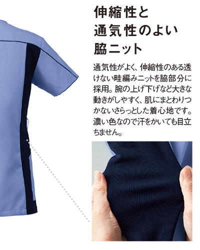 ・脇に収縮性と通気性の良いニット素材使用
