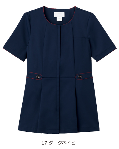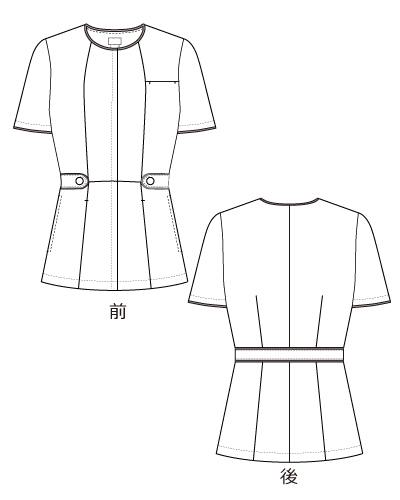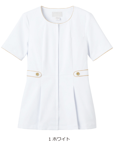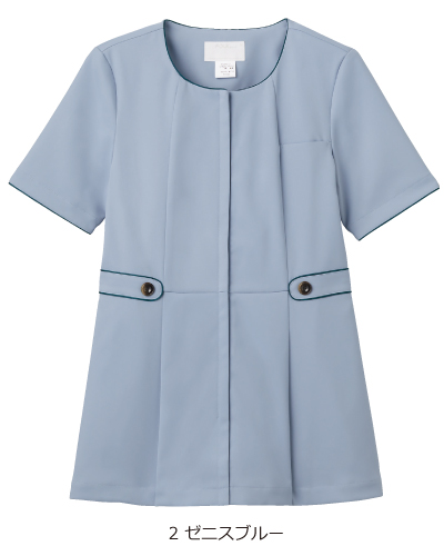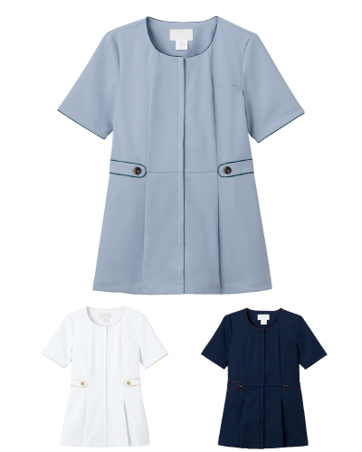 上品にスタイルアップするデザインと清潔感のあるカラーが魅力のレディーススクラブ。使用している素材のノンPUストレッチは、伸縮性とイージーケア性に優れたバランスの取れた素材です。ウエストベルトにタブをつけてウエストマークすることで、メリハリのあるシルエットに。配色のパイピングがポイントとなり、女性らしい印象を引き立てています。羽織って着られる前ファスナー仕様で着脱が楽チン。美容クリニックや受付、審美歯科などおもてなし職種向けのデザインが特徴のレディーススクラブです。