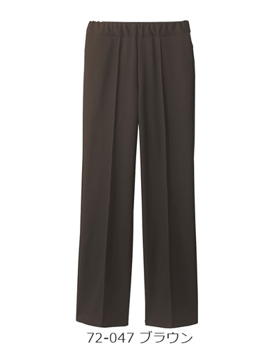 総ゴムのウエストは、ひもでサイズ調整が可能。両サイドにはポケットが付いています。カラーは万能カラーのブラックと、落ち着いたブラウンの2色展開。