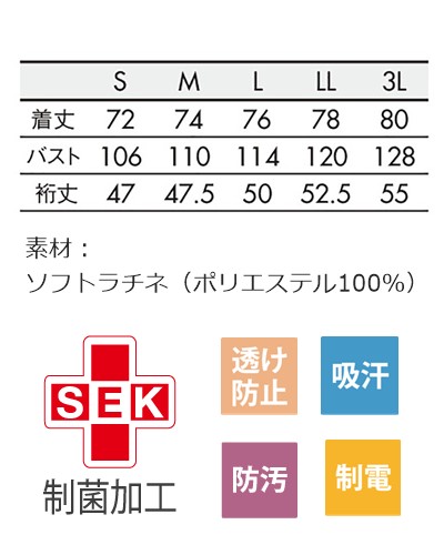 機能:制菌/透け防止/吸汗/制電/防汚加工