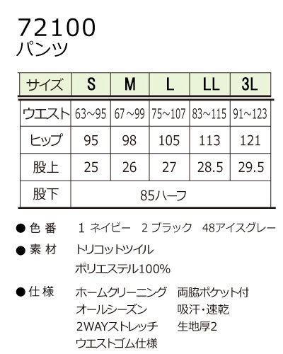 ホームクリーニング/オールシーズン/ストレッチ/ウエストゴム仕様/両脇ポケット/防透/生地厚2