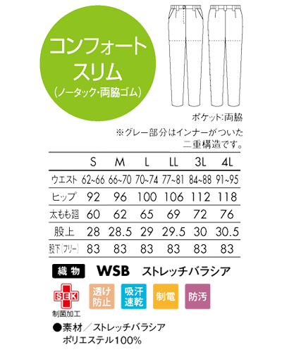 ノータック 両脇ゴム やや細身タイプのパンツです。