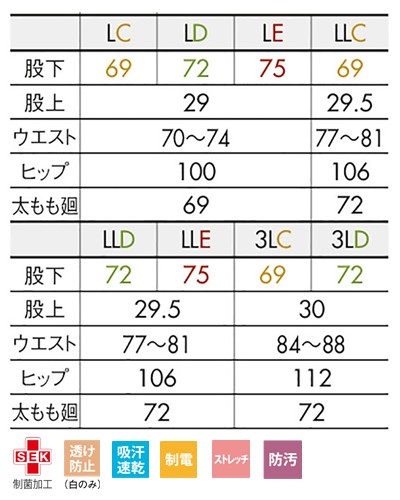 機能:制菌/透け防止(白)/吸汗速乾/制電/ストレッチ/防汚