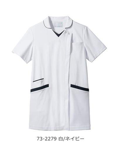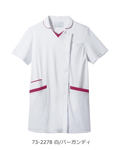制菌、吸汗速乾、制電、防汚といった機能付き。襟付きデザインはきちんと感をプラス。白ベースなのでスクラブが初めてという方にもオススメ。