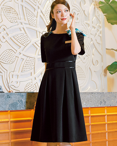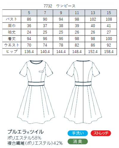 きれいなドレープを描いて女性らしいシルエットをつくる、着心地のよいプルエラツイル使用。