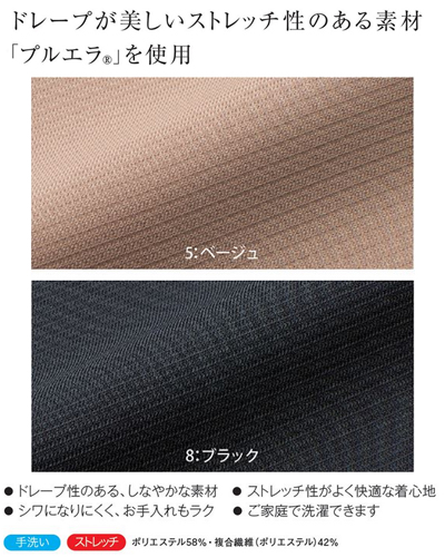 ドレープ感のあるしなやかな素材。ストレッチ性がよく快適な着心地。