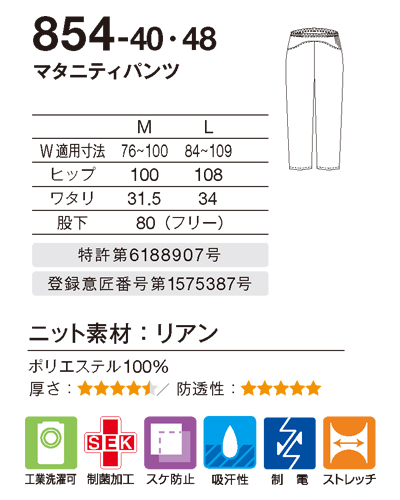 がんばるお母さんと赤ちゃんを守りたい。そんな想いを込めて、快適に動ける安心設計にとことんこだわりました。お腹を優しく包み込み安心のサポート感、なのに窮屈感はゼロ。シルエットもきれい。お母さんナースに捧げる自信作です。 【ニット素材】 リアン(ポリエステル100%)