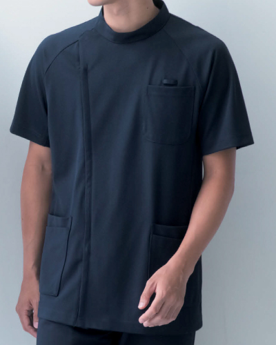 使う場所を選ばないベーシックなケーシースタイルでありながら、衣服の動きやすさを極限まで追求した『動体裁断』を使用し、着心地や使いやすさをサポートしたこだわりの一着。肩の可動域の向上とツッパリ感の軽減を叶えたストレスフリーの着心地です。 【ニット素材】 リアン(ポリエステル100%) 【仕様】 左胸に携帯・スマートフォン対応ポケット付/左胸に名札ループ付/腰ポケット二重仕様/右腰ポケットループ付/比翼ファスナー仕様