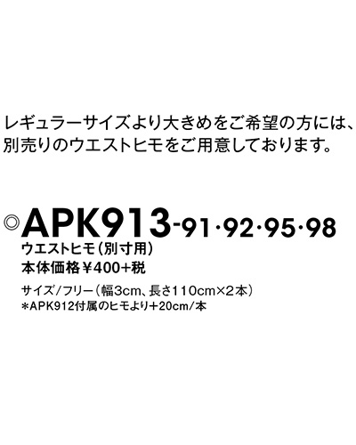 レギュラーサイズより大きめをご希望の方向けウエストヒモです。