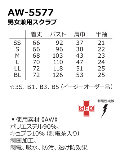 | 製品名: | AW-5577 男女兼用スクラブ ナガイレーベン(nagaileben) |