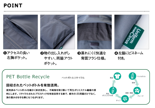 白衣・ナースウェア・介護服・エステウェア通販|ナースウェアドットコム BEAMS(ビームス) ナースウェアナースウェアすべて> トップス カーディガン・ブルゾン BKJ0701 Uniform Circus BEAMS ビームス ユニセックスジャケット 男女兼用 価格: ¥8,690 (税込) [ポイント還元 86ポイント~] 販売期間: カラー: 選択してください 2. グレー 8. ネイビー サイズ: 選択してください SS S M L LL 3L 4L 5L 数量: 個 在庫 ○ カラーサイズ2. グレーSSSMLLL3L4L5L8. ネイビーSSSMLLL3L4L5L 返品・交換についての詳細はこちら レビューはありません 防風性のあるスタジャンテイストのジャケット。 環境に配慮したECO素材「再生ペットボトル繊維」を採用。 抗菌防臭加工「ポリジン・スティフレッシュ加工」でいつでもクリーンに。 ポリエステル100% 素材:ストレッチタフタ 【素材】 男女兼用/ストレッチ/抗菌防臭/防風 左胸ポケット/両脇アウトポケット/袖口ゴム仕様 ※こちらの商品は、再生ポリエステルを使用しています。 コーディネート商品 BKB4501 Uniform Circus BEAMS ビームス ポロシャツ 男女兼用 ¥6,050(税込) BKB4502 Uniform Circus BEAMS ビームス ポロシャツ 男女兼用 ¥6,050(税込) BKB4503 Uniform Circus BEAMS ビームス ポロシャツ 男女兼用 ¥6,270(税込) BKB4506 Uniform Circus BEAMS ビームス バンドカラーシャツ 男女兼用 ¥6,160(税込) BKB4504 Uniform Circus BEAMS ビームス ワイドカラーシャツ 男女兼用 ¥6,160(税込) BKB4505 Uniform Circus BEAMS ビームス レギュラーカラーシャツ 男女兼用 ¥6,160(税込) BKP6301 Uniform Circus BEAMS ビームス レディススキニーパンツ ¥7,590(税込) BKP6001 Uniform Circus BEAMS ビームス メンズスキニーパンツ ¥7,590(税込) BKJ0703 Uniform Circus BEAMS ビームス カーディガン 男女兼用 ¥6,930(税込) BKV1701 Uniform Circus BEAMS ビームス エプロンベスト ¥7,700(税込) BKJ0702 Uniform Circus BEAMS ビームス ユニセックスジャケット 男女兼用 ¥9,680(税込) BKP6701 Uniform Circus BEAMS ビームス ユニセックスパンツ 男女兼用 ¥7,260(税込) BKA9001 Uniform Circus BEAMS ビームス キャップ 男女兼用 ¥4,620(税込)