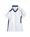 体の動きをサポートする独自のカッティングで、パフォーマンスをアップ。●Vネック すっきりとした表情を演出するVネックのリブ仕様 PHSや名札用ストラップのズレを防ぐストラップホールド●ショルダーリブ 身体のスムーズな動きを実現する肩後ろ部のリブ仕様。●脇下通気仕様 衣服内の通気性を高める、ベンチレーション仕様。●ウエストループ キーホルダーも掛けられる便利な右ウエストループ。●PHS用ポケット PHSの落下を防止する画期的な収納ポケット。●内ポケット 脇ポケットには小物を整理しやすい内ポケット付き。【素材】フルダルドライトリコット(ポリエステル100%) SEK、制電、防汚加工、透け防止、吸汗速乾