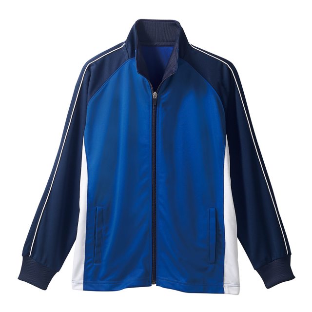 フロントファスナーで着脱スムーズ。・耐久性に優れるセミオートマチックファスナー。・通気性のよいメッシュ生地素材。・配色デザインが目を引くトレーニングウェア。 【素材】ダブルピケ(ポリエステル100%)SEK、吸汗