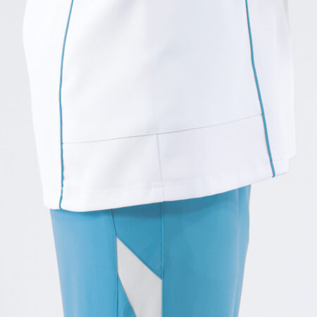 すっきりと見せるライン使いと、さりげない配色がアクセント。・フロントファスナーで着脱スムーズ。 【素材】ソフトラチネ(ポリエステル100%)SEK、透け防止、吸汗、制電、防汚