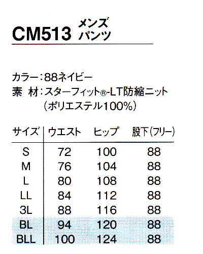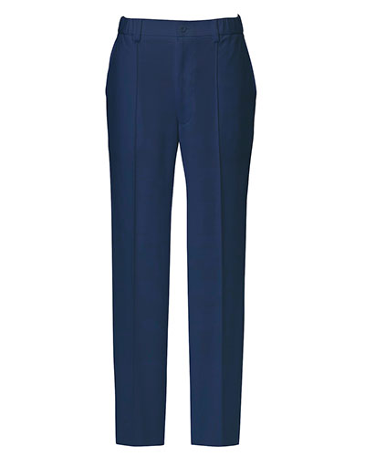 すっきりとしたネイビーのメンズパンツ。 素材:スターフィット-LT防縮ニット(ポリエステル100%) [工業洗濯OK] [制菌加工] [制電] [スーパーストレッチ] [防縮] [吸汗] [速乾] [防透]