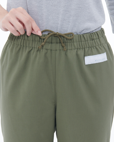 環境にやさしいサスティナブル素材を使用したウエスト総ゴムの男女兼用パンツ。綿混のナチュラルなタッチと豊かなストレッチ性が快適なはき心地を提供します。 ●男女兼用 ●ウエスト総ゴム仕様 ●裾上げ済み ・ポリエステル65% 綿35%(制電糸入り)