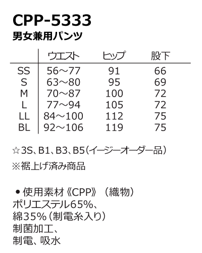 | 製品名: | CPP-5333 男女兼用パンツ ナガイレーベン(nagaileben) |