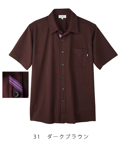 CR159 KIRAKU(キラク)◆ニットシャツ 男女兼用◆シックなカラーにデザインテープが映える上品なニットシャツ。◆下前立と胸ポケットデザインテープ付、左胸Wポケット