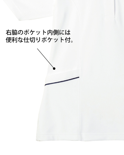 ・胸ポケット・右脇ポケット(仕切りポケット付)・左脇ポケット付。