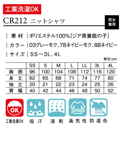 KIRAKU(キラク) トンボ ケア◆CR212-03-78-88 ニットシャツ 男女兼用◆ジア原着鹿の子 消毒・漂白にも耐える、限りなく色落ちしにくい素材 ◆ポリエステル100%[ジア原着鹿の子]◆工業洗濯、吸汗、速乾、通気性、防退色