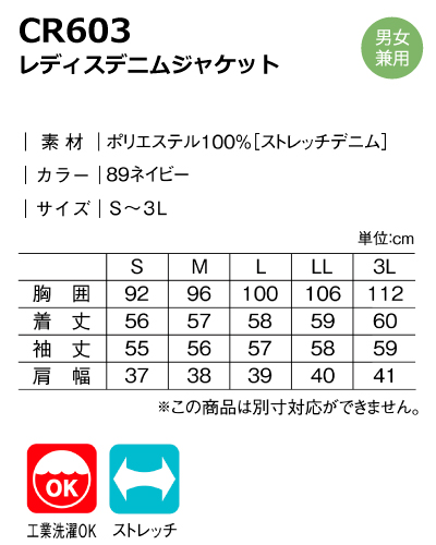 | 製品名: | CR603 レディスデニムジャケット キラク(kiraku) |