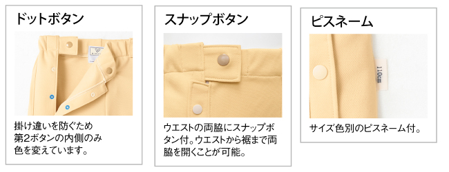 脇のボタンで全開できて、おむつ交換もしやすい設計。子ども用術前術後パンツ。◆素材:ポリエステル95%・綿5%(フィックス防縮ニット)