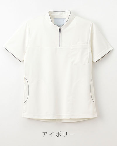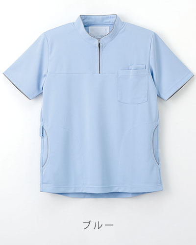 着るとひんやりする涼感素材を使用して汗蒸れも防いでさわやかに着用できます。左胸(PHSポケット付き)、両脇ポケット。衿元、袖口、腰ポケット口にシャープなグレーアクセントラインがデザインを引き締めます。接触冷感素材で仕上げることで肌から生地へ瞬時に熱が移動するため、涼しく快適に着ることができます。アクティブな動きを感じさせるスポーティーテイストのデザインです。【素材】ポリエステル93% ナイロン7%(制電糸入り) 吸水・防汚効果 制菌加工