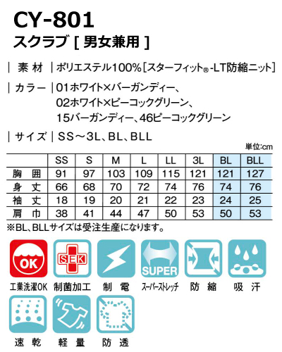 白衣・ナースウェア・介護服・エステウェア通販|ナースウェアドットコム ヨネックス(YONEX)> メディカルアイテム スクラブ スクラブスクラブ(男女兼用) CY801 スクラブ 男女兼用 YONEX(ヨネックス) 定価: ¥9,790(税込) 価格: ¥8,321 (税込) 15%OFF [ポイント還元 83ポイント~] 販売期間: カラー: 選択してください 01 ホワイト×バーガンディー 02 ホワイト×ピーコックグリーン 15 バーガンディー 46 ピーコックグリーン サイズ: 選択してください SS S M L LL 3L BL(受注生産) BLL(受注生産) 数量: 個 在庫 ○ カラーサイズ01 ホワイト×バーガンディーSSSMLLL3LBL(受注生産)BLL(受注生産)02 ホワイト×ピーコックグリーンSSSMLLL3LBL(受注生産)BLL(受注生産)15 バーガンディーSSSMLLL3LBL(受注生産)BLL(受注生産)46 ピーコックグリーンSSSMLLL3LBL(受注生産)BLL(受注生産) 返品・交換についての詳細はこちら レビューはありません シャープな切り替えがスタイリッシュ! 【素材】 ポリエステル100% [スターフィット、LT防縮ニット] 【コーディネート商品】 ・CY570 パンツ