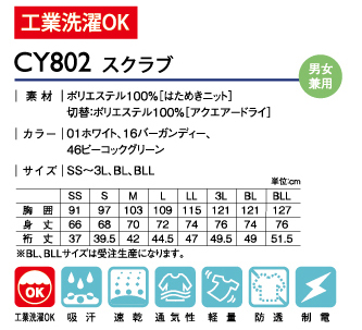 工業洗濯OK、吸汗、速乾、通気性、軽量、防透、制電
