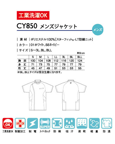 工業洗濯OK、制菌加工、制電、スーパーストレッチ、防縮、吸汗、速乾、軽量、防透