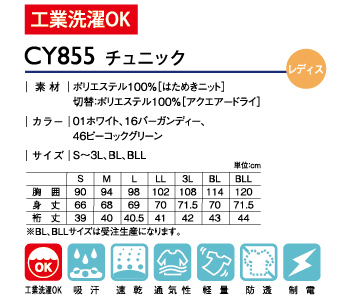 工業洗濯OK、吸汗、速乾、通気性、軽量、防透、制電