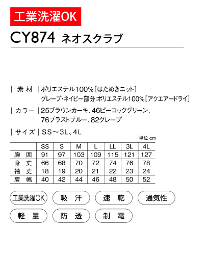 機能:工業洗濯OK・速乾・吸汗・通気性・軽量・防透・制電