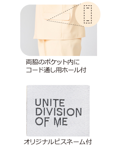 ・左右胸ポケット、両脇ポケット(コード通し用ホール付)