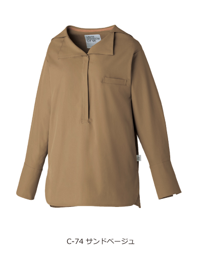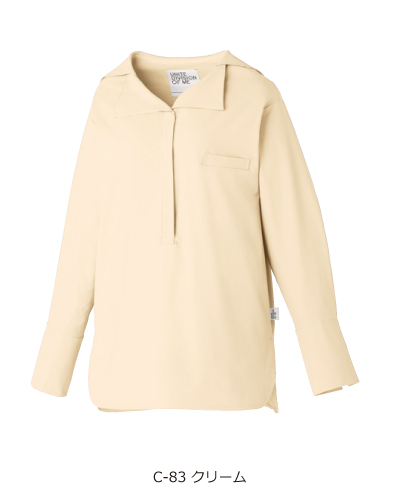 セーラーカラーが特徴の落ち着いたクラシカルな印象のシャツスタイル