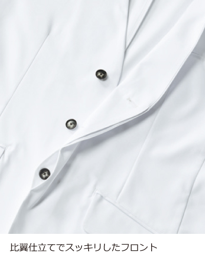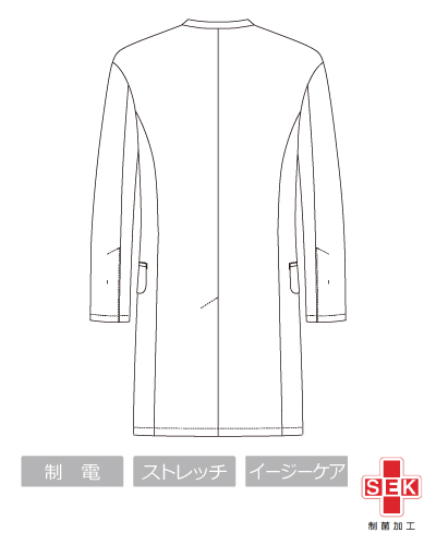 ・左胸ポケット、両脇ポケット、比翼仕立て、後ろセンターベント