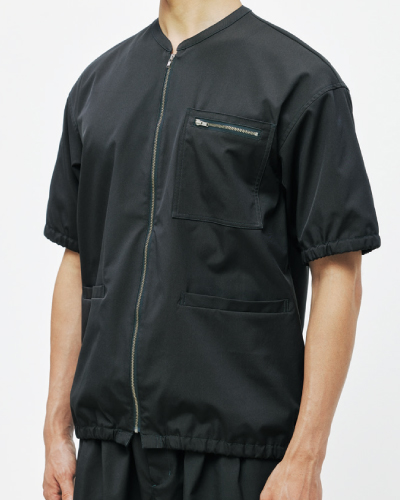 ・左胸ポケット(ペン差しループ付)、両脇ポケット、袖口ゴム、裾ゴム