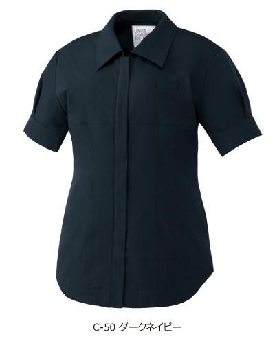 ・フロントファスナーあき、左胸ポケット、両脇ポケット