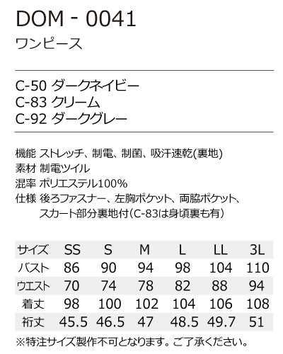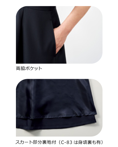 仕様:後ろファスナー・左胸ポケット・両脇ポケット・スカート部分裏地つき