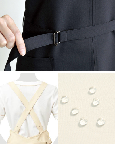 ELEFEE(エレフィー) by ESTHETIQUE(エステティック) シロタコーポレーション E-3089 エプロン◆パンツに良く合うすっきりエプロン。撥水・撥油・防汚加工で作業性も抜群。◆防透け、制電、ストレッチ、撥水、撥油、防汚、吸汗、速乾、両脇ポケット