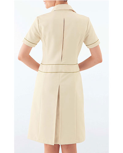 ELEFEE(エレフィー) by ESTHETIQUE(エステティック) シロタコーポレーション E-3094-1 -5 -7 ワンピース◆ローウエストの切り替えとパイピングの配色◆両脇・左胸ポケット付、防透け、制電、ストレッチ、撥水、撥油、防汚、吸汗、速乾