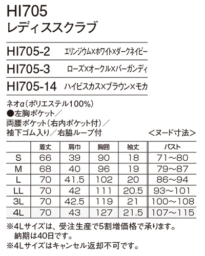 ※4Lサイズは、受注生産(納期40日程度)・5割増価格となります。