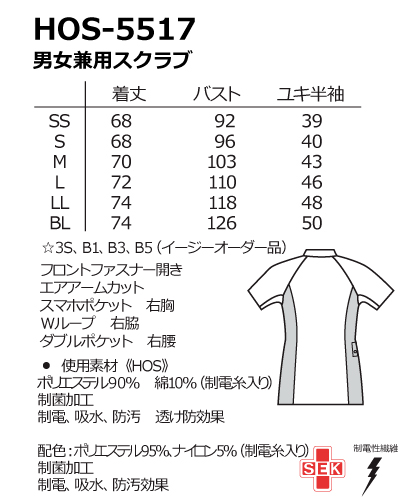 | 製品名: | HOS-5517 ナガイレーベン(nagaileben) 男女兼用スクラブ |