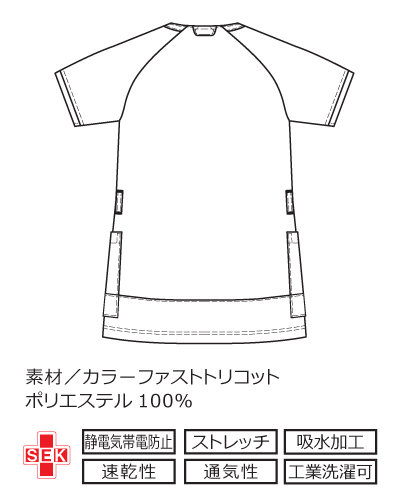 SEK、制電、ストレッチ、吸水、速乾、通気性、工業洗濯可