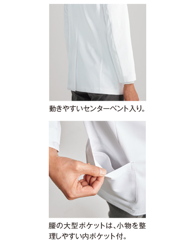 工業洗濯可、制菌加工、透け防止、吸汗性、制電、ストレッチ